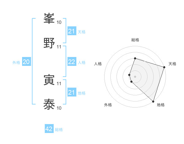 峯野 寅泰さんの天格は21画の5点!