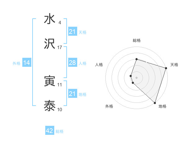 水沢 寅泰さんの天格は21画の5点!