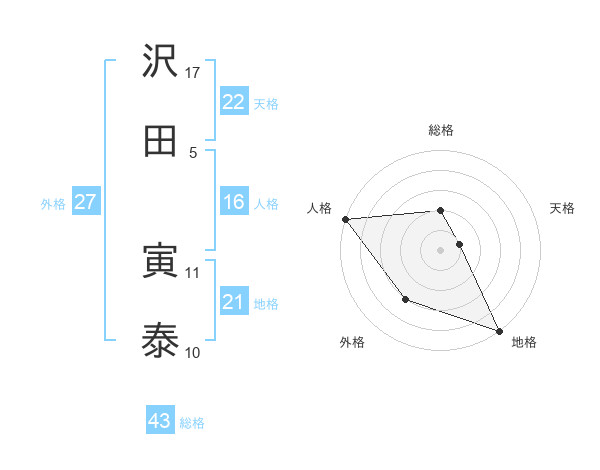 沢田 寅泰さんの天格は22画の1点!
