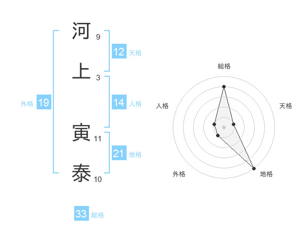 河上 寅泰さんの総格は33画の4点!