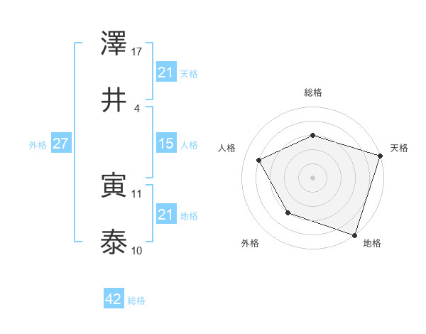 澤井 寅泰さんの天格は21画の5点!