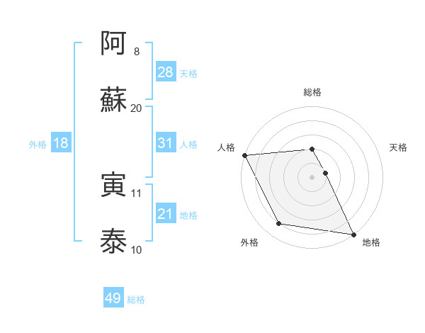阿蘇 寅泰さんを姓名の画数から五運を鑑定