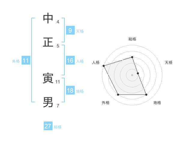 中正 寅男さんの総格は27画の3点!
