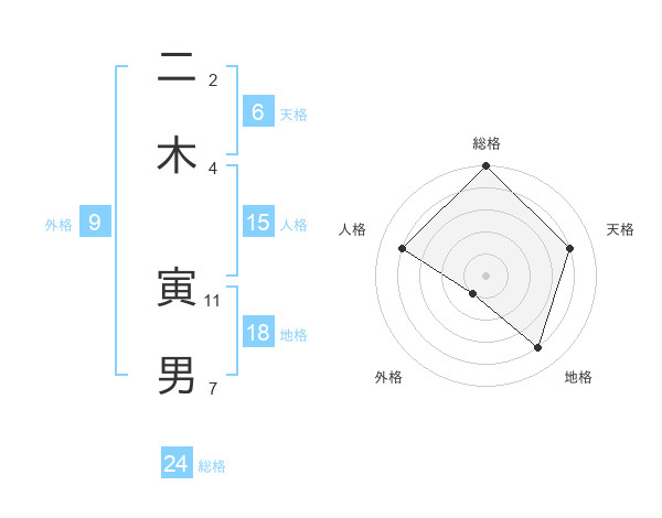 二木 寅男さんの総格は24画の5点!
