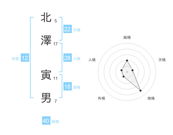 北澤 寅男さんを姓名の画数から五運を鑑定