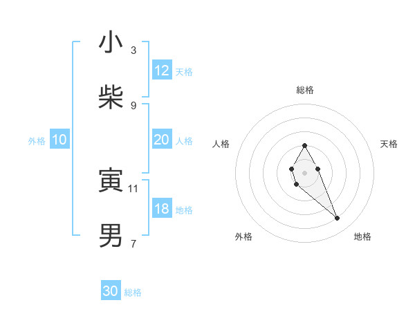 小柴 寅男さんの総格は30画の2点!