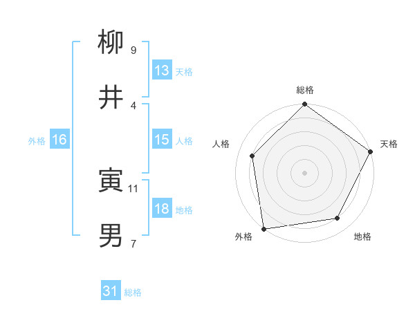 柳井 寅男さんを姓名の画数から五運を鑑定