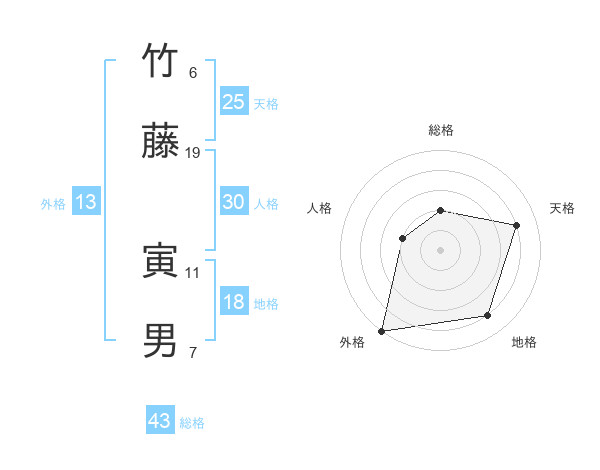 竹藤 寅男さんを姓名の画数から五運を鑑定