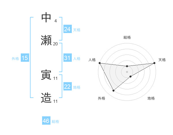 中瀬 寅造さんを姓名の画数から五運を鑑定