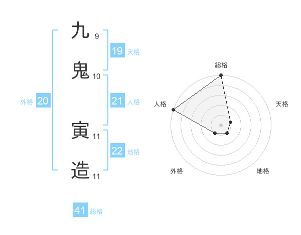 九鬼 寅造さんの外格は20画の1点!