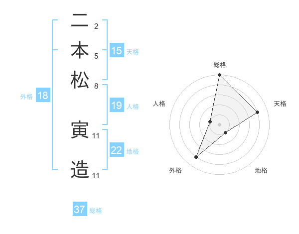 二本松 寅造さんの総格は37画の5点!