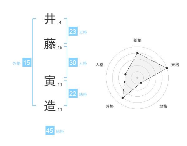 井藤 寅造さんの総格は45画の4点!