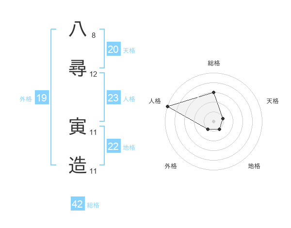 八尋 寅造さんを姓名の画数から五運を鑑定