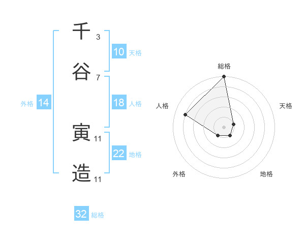 千谷 寅造さんの総格は32画の5点!
