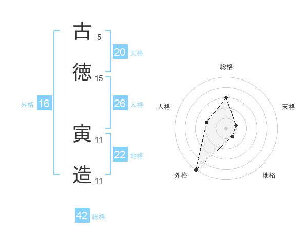 古徳 寅造さんの外格は16画の5点!