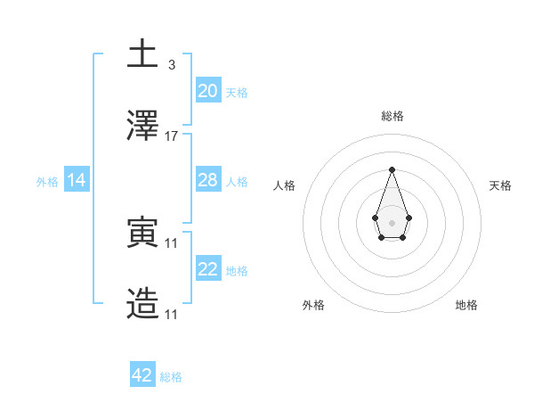 土澤 寅造さんを姓名の画数から五運を鑑定