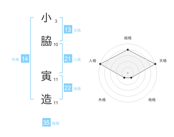 小脇 寅造さんを姓名の画数から五運を鑑定