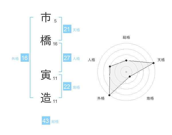 市橋 寅造さんを姓名の画数から五運を鑑定