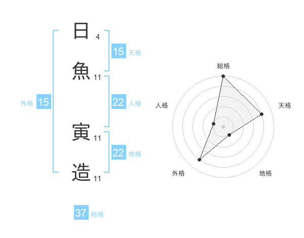 日魚 寅造さんの天格は15画の4点!