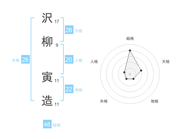 沢柳 寅造さんの総格は48画の4点!