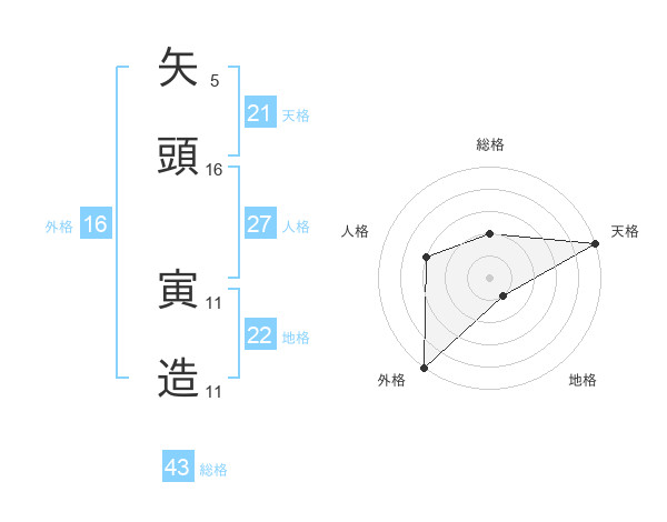 矢頭 寅造さんの天格は21画の5点!