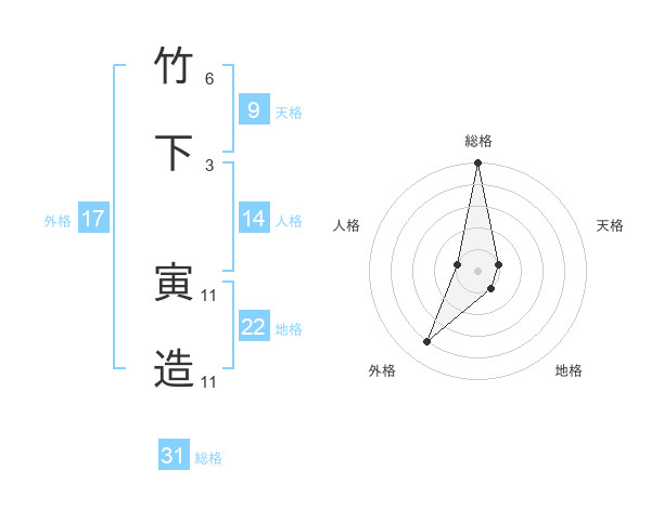 竹下 寅造さんの総格は31画の5点!