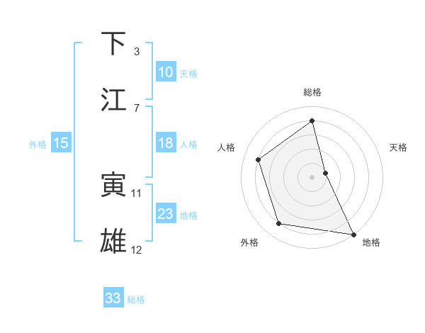 下江 寅雄さんを姓名の画数から五運を鑑定