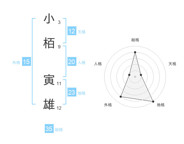 小栢 寅雄さんの総格は35画の4点!