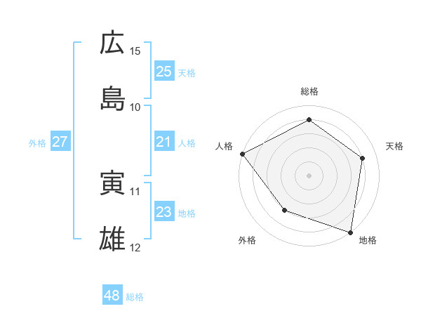 広島 寅雄さんの総格は48画の4点!