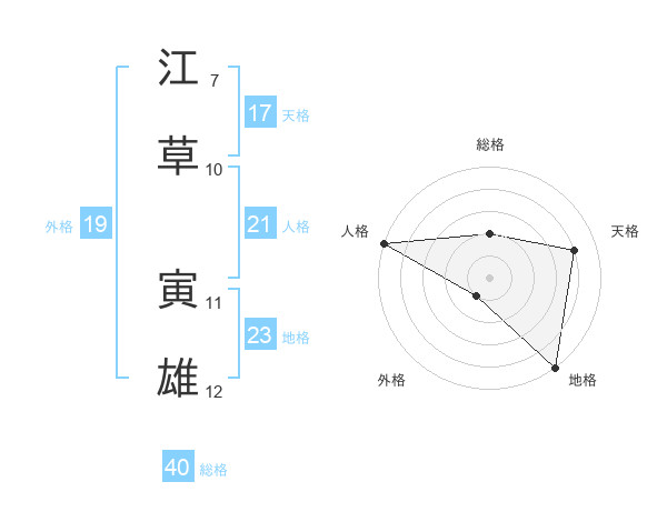江草 寅雄さんの地格は23画の5点!