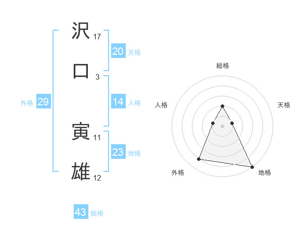 沢口 寅雄さんの外格は29画の4点!