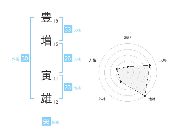 豊増 寅雄さんを姓名の画数から五運を鑑定