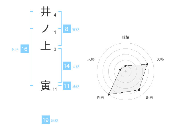 井ノ上 寅さんの天格は8画の4点!