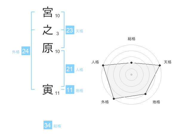 宮之原 寅さんの人格は21画の5点!