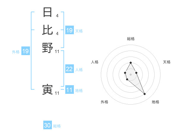 日比野 寅さんの地格は11画の4点!