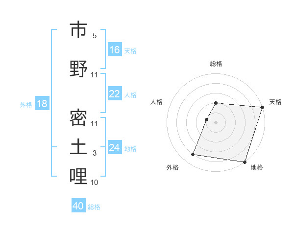 市野 密土哩さんの天格は16画の5点!