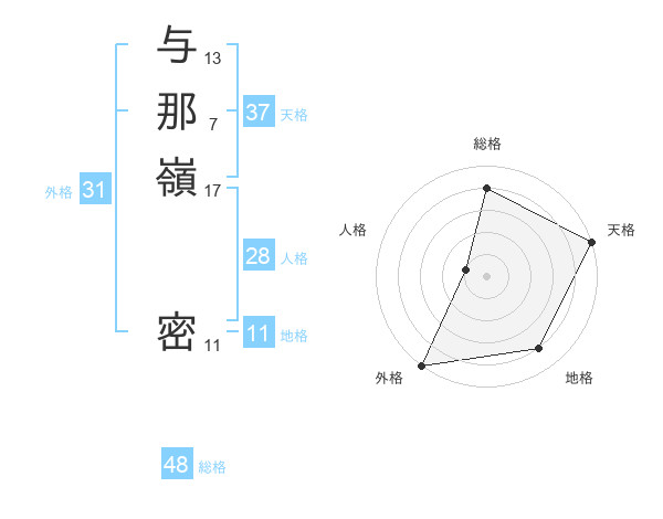 与那嶺 密さんの天格は37画の5点!