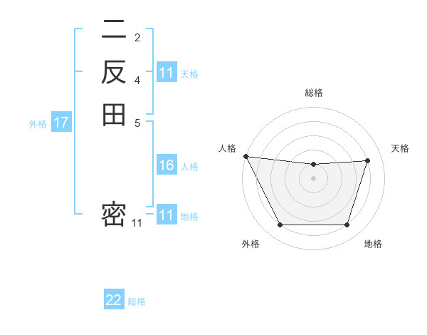 二反田 密さんの総格は22画の1点!