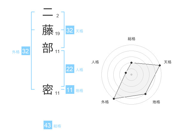 二藤部 密さんの外格は32画の5点!
