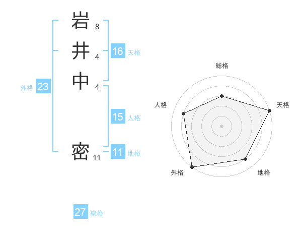 岩井中 密さんの外格は23画の5点!