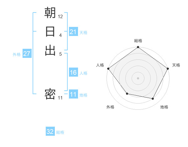 朝日出 密さんの外格は27画の3点!