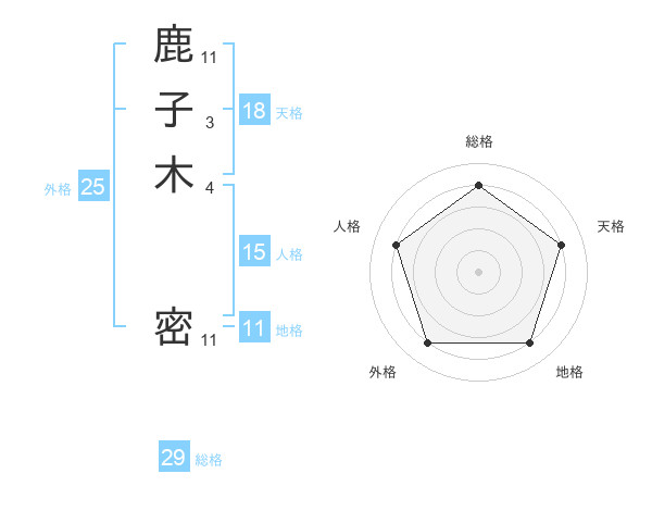 鹿子木 密さんを姓名の画数から五運を鑑定
