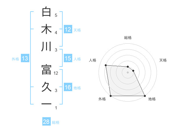 白木川 富久一さんを姓名の画数から五運を鑑定