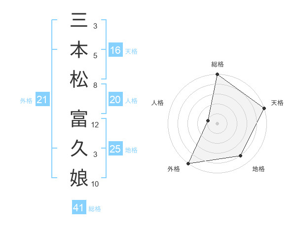 三本松 富久娘さんを姓名の画数から五運を鑑定