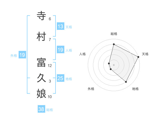 寺村 富久娘さんを姓名の画数から五運を鑑定