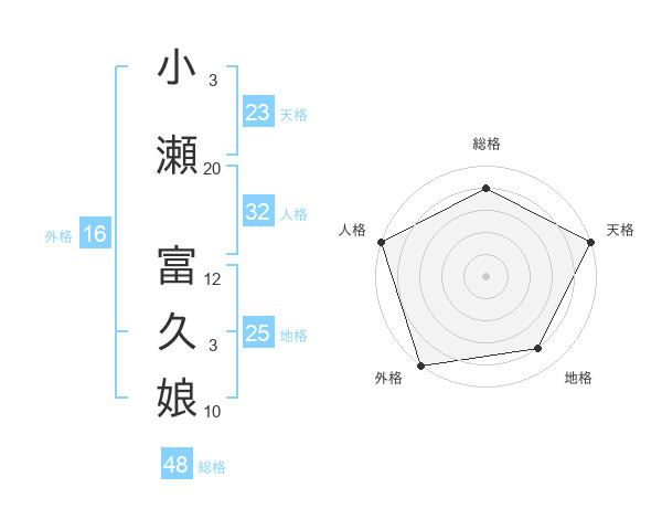 小瀬 富久娘さんを姓名の画数から五運を鑑定