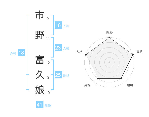 市野 富久娘さんを姓名の画数から五運を鑑定