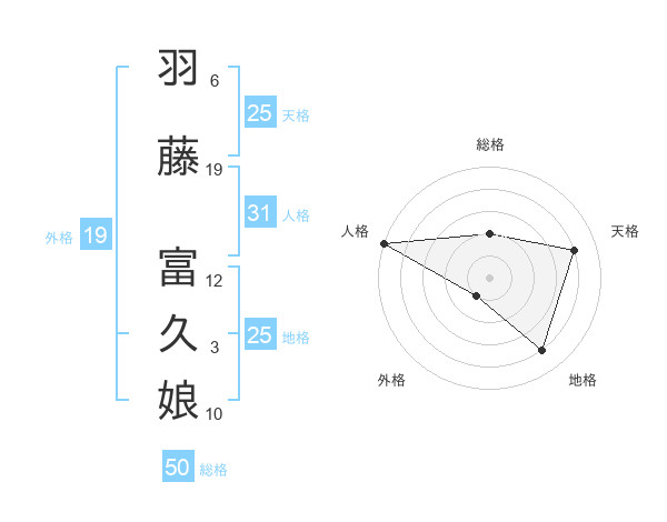 羽藤 富久娘さんを姓名の画数から五運を鑑定