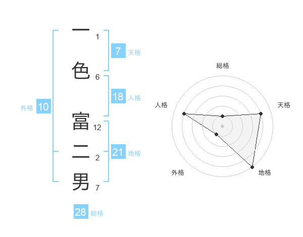 占い結果は姓名判断である以上、良い場合も悪い場合もありますが、決してお名前を誹謗中傷するものでなく、画数の自動計算によって得られたものです。また、本サイトの検索によって得られた鑑定結果で、第三者を誹謗中傷したり名誉を棄損するような行為を禁じます。