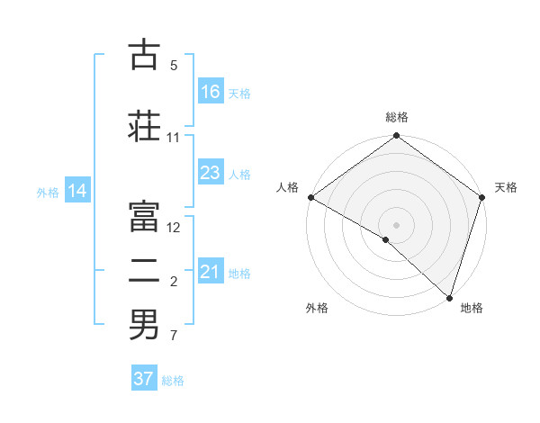 古荘 富二男さんを姓名の画数から五運を鑑定
